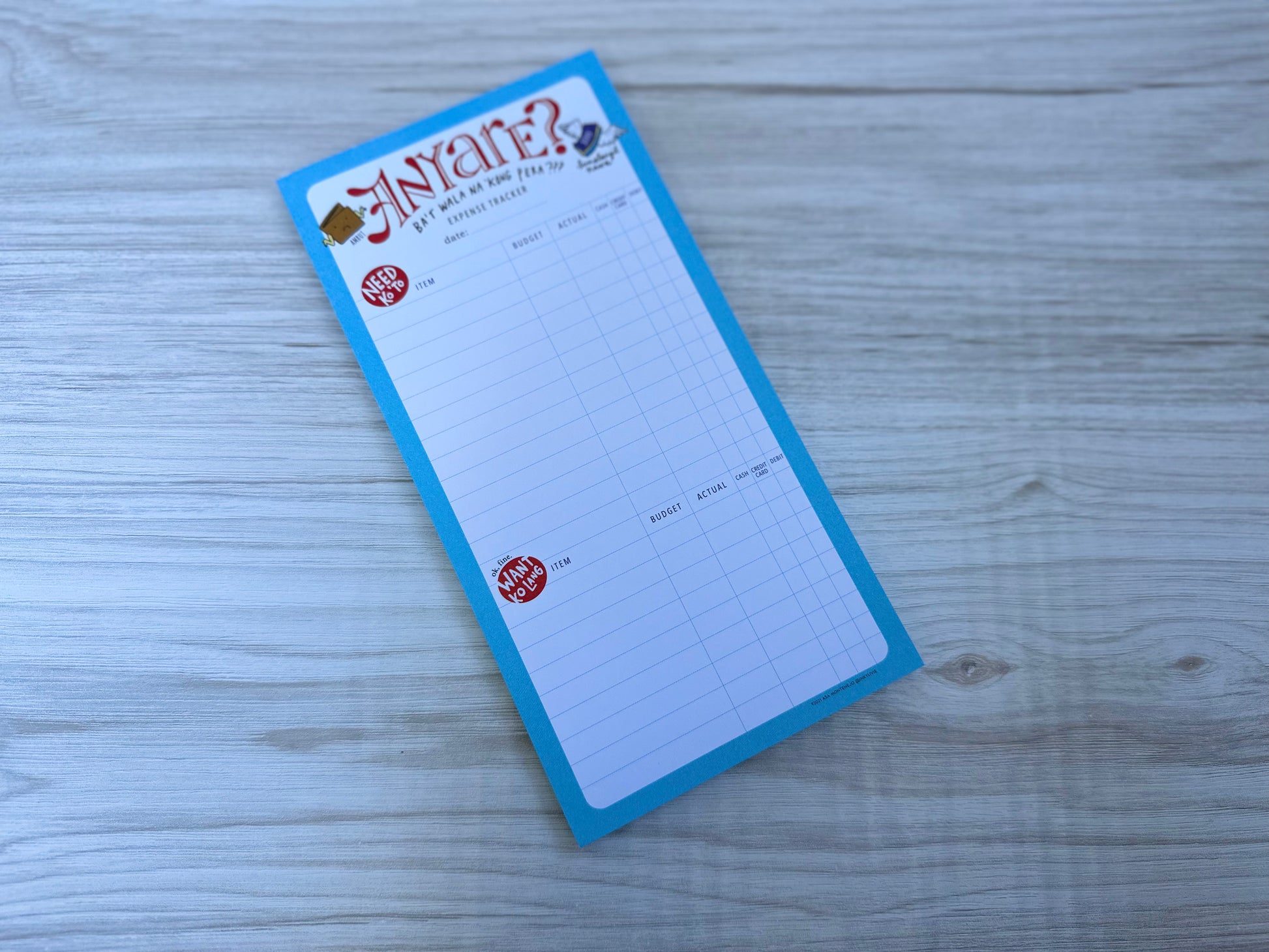 This fun notepad can help you track your finances as you continue to add to cart in those late night feedings!