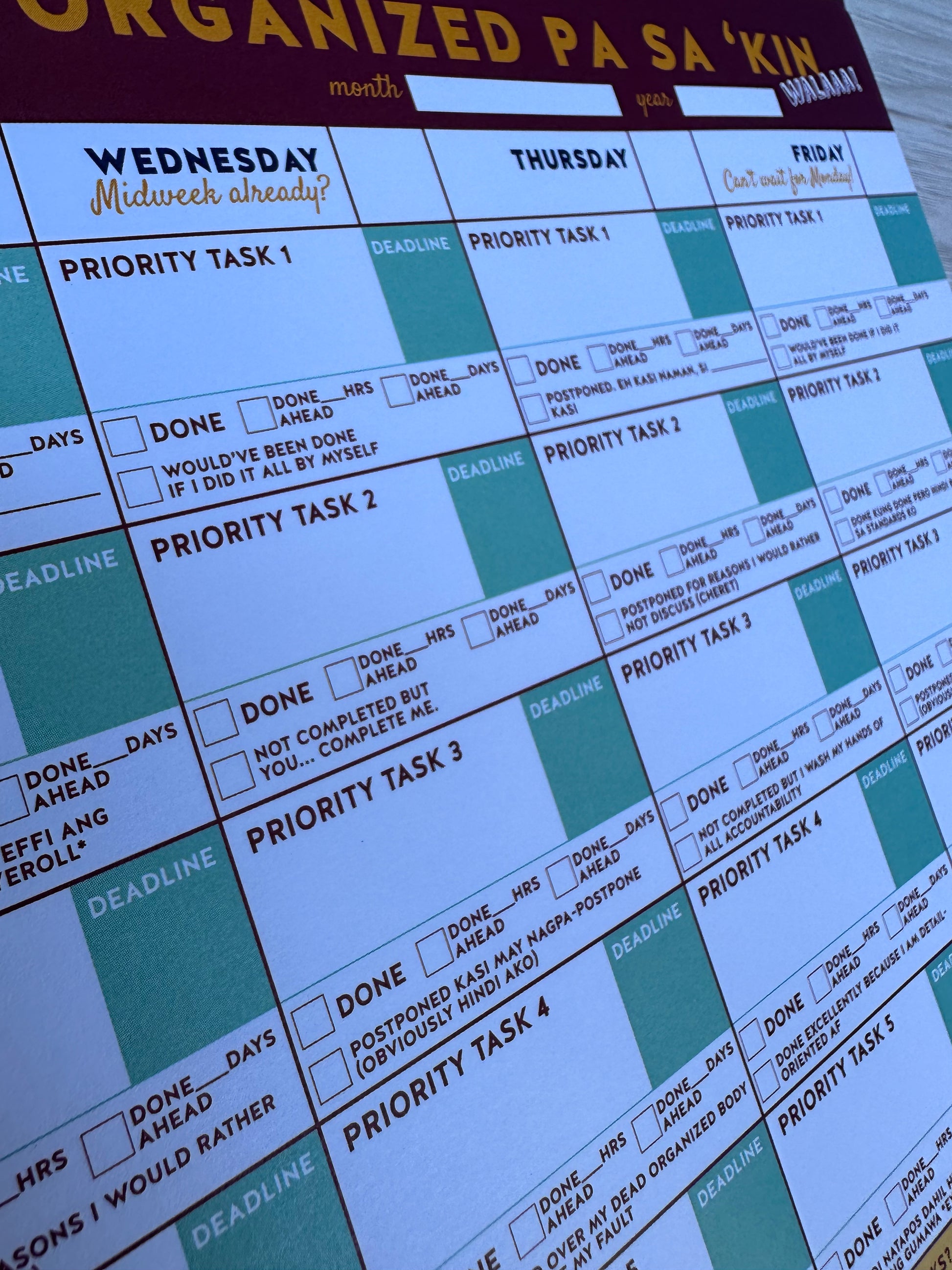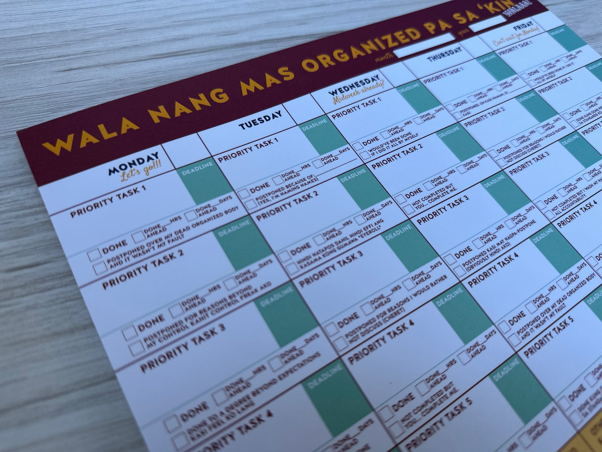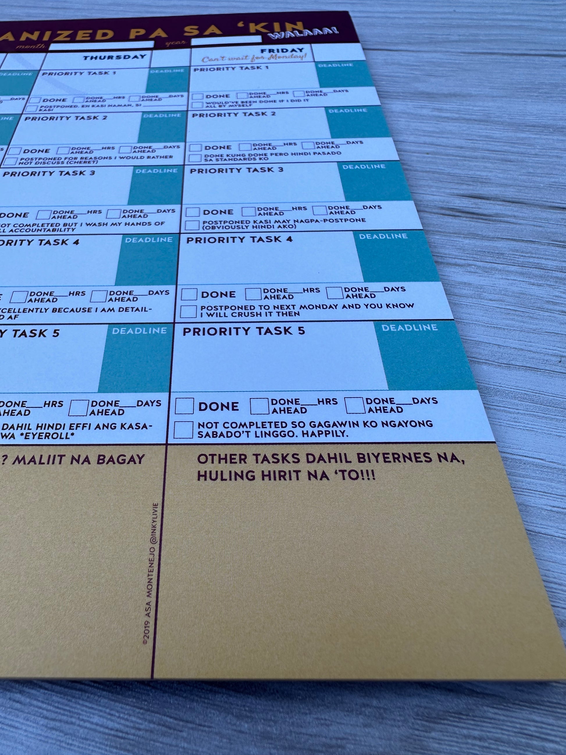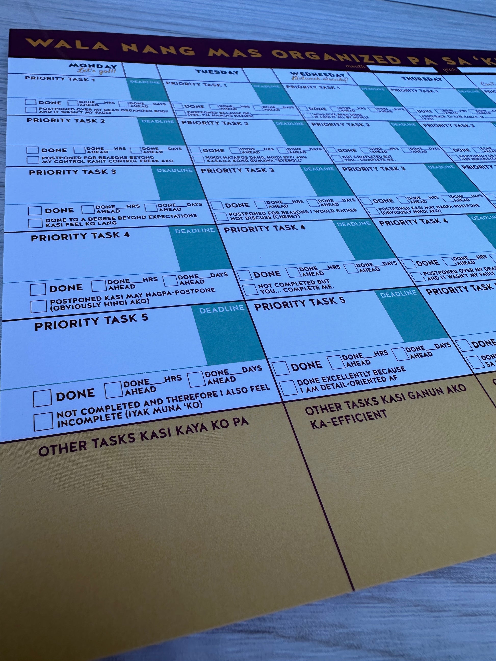 Are you a super efficient person, love listing your task and ticking the box? Here's the perfect weekly planner for you with lots of prompts but also excuses in case you weren't able to pull it off - and that's okay! Have fun organising your week with this notepad planner!